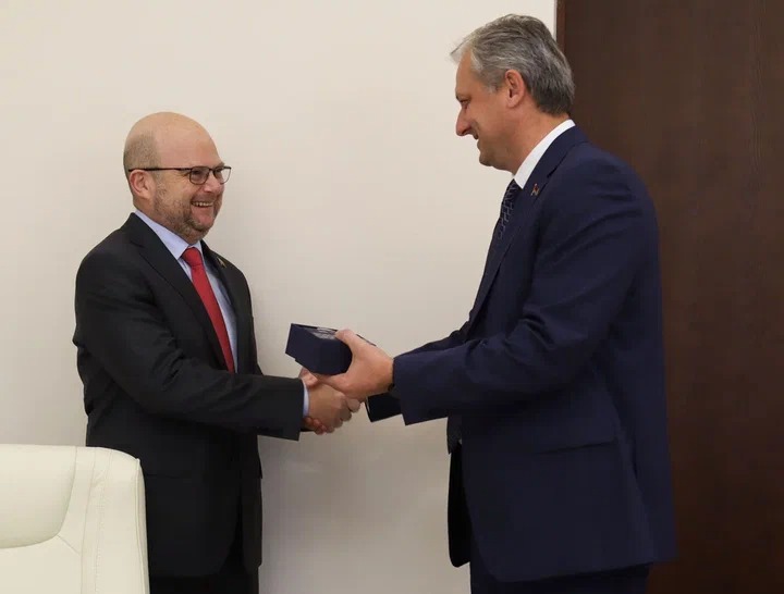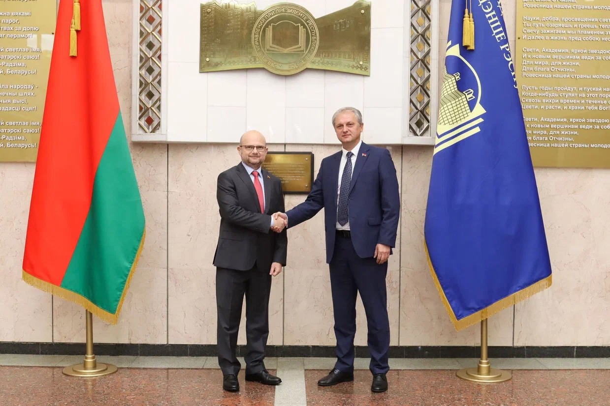 En el marco del fortalecimiento de las relaciones bilaterales entre la República Bolivariana de Venezuela y la República de Belarús, se celebró una reunión entre el embajador Franklin Ramírez y el rector Ígor Ivánovich Buzovsky, máxima autoridad de la Academia de Administración del Presidente del país europeo.