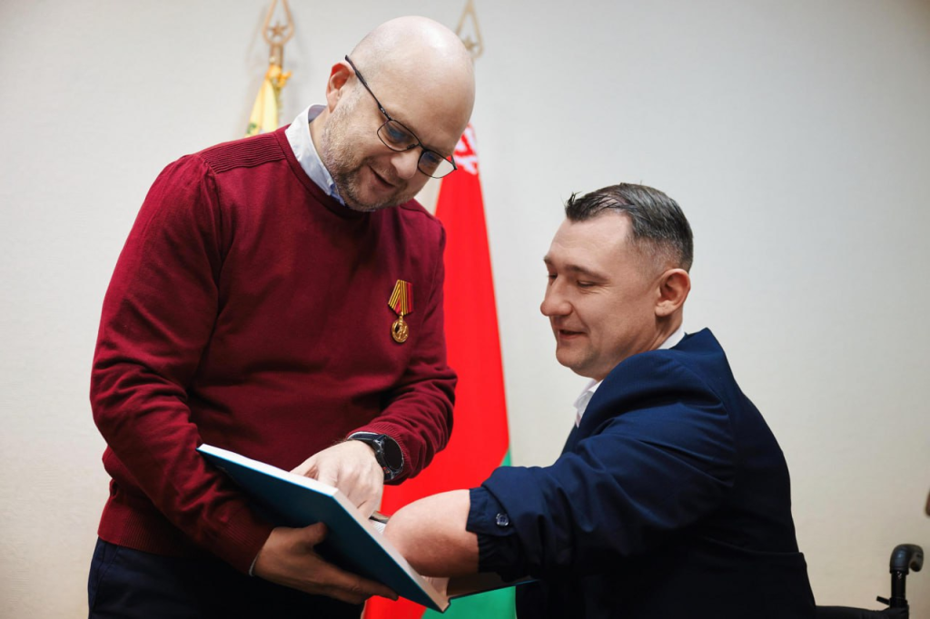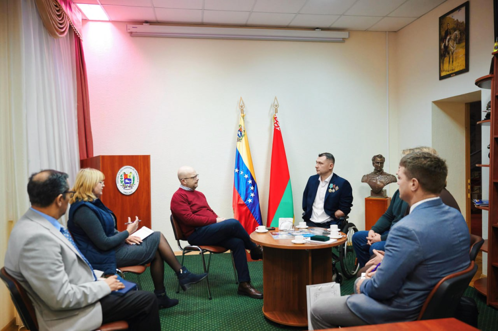 En el marco de la jornada, el jefe de Misión conversó con el reconocido paralímpico, múltiple récord mundial y europeo, conferencista motivacional y líder social, Alexey Talay, abordando temas de colaboración entre la Embajada y la Fundación Benéfica y el fortalecimiento de las relaciones belaruso-venezolanas, a la vez que intercambiaron opiniones sobre el contexto internacional actual.