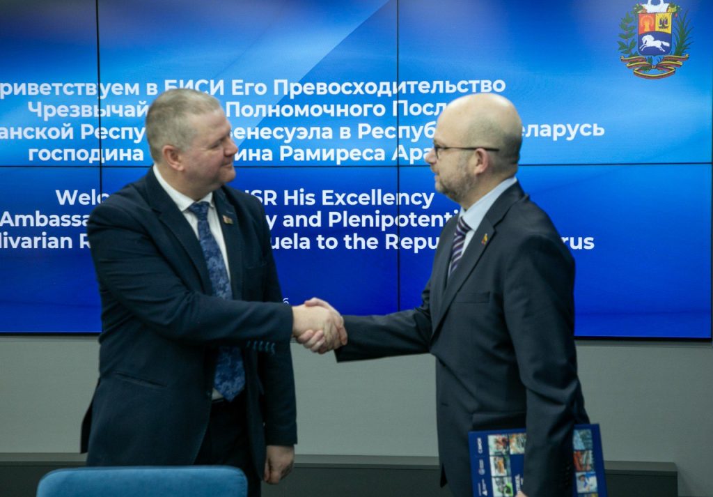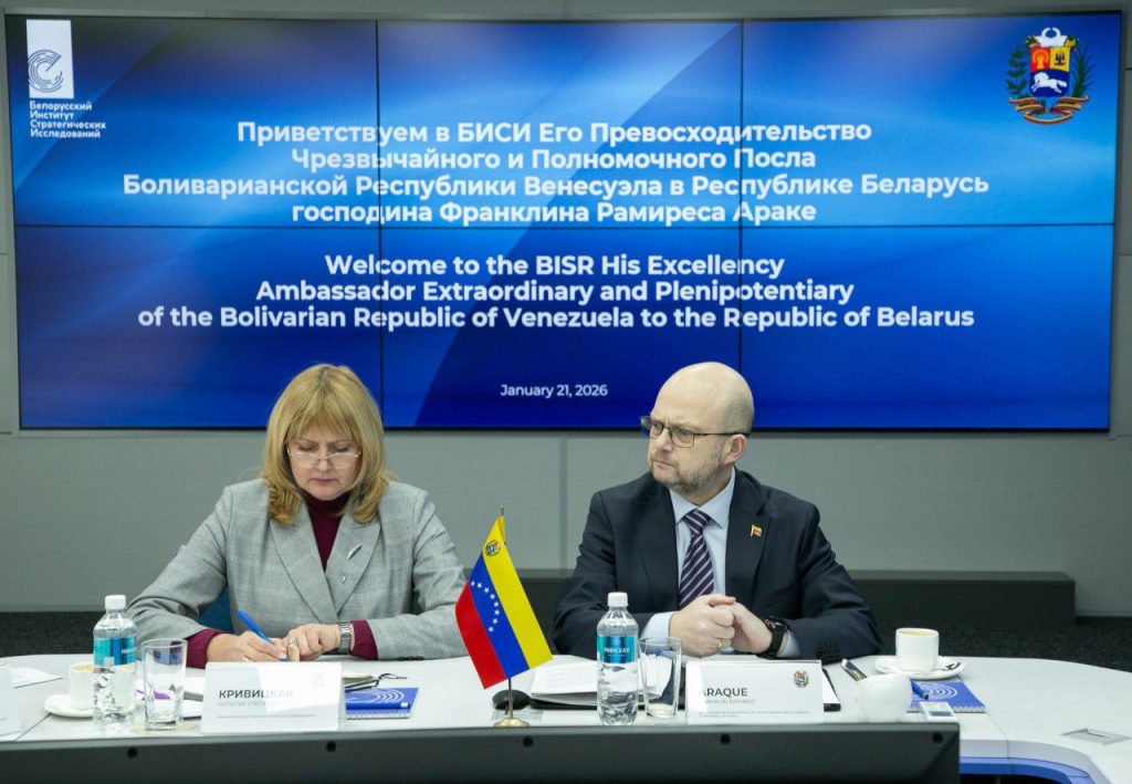 Minsk, 20 de enero de 2026.- La Embajada de la República Bolivariana de Venezuela en la República de Belarús sostuvo una reunión con el Instituto Belaruso de Estudios Estratégicos (BISI), encabezado por su director Oleg Makárov, con la finalidad de promover estudios especializados sobre las violaciones al Derecho Internacional, la instrumentalización política de sus principios, los desafíos actuales a la soberanía de los Estados y el impacto de las medidas coercitivas unilaterales en los países.